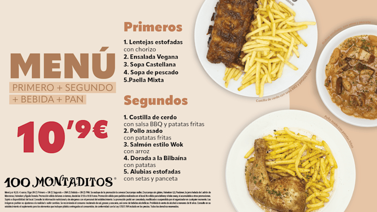 Montaditos clásicos y montaditos más innovadores, todo un abanico de opciones para que disfrutes de este producto sencillo, delicioso y accesible acompañado de una bebida refrescante, y disfrutar de nuestra carta y de buena compañía en tus ratos de ocio en Los 100 Montaditos. En nuestra carta podrás disfrutar tanto de montaditos como de tablas de montaditos surtidos y variados, ensaladas, aperitivos para compartir, postres como helado y una gran variedad de bebidas.